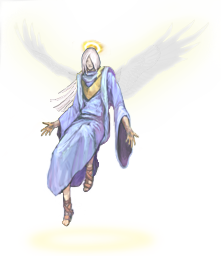 まずは天使。ちょっと神様のじーさんに若返ってもらいました(笑) RTPの天使は武器所持だったから、こいつにも何か握らせた方が良かったかしらん